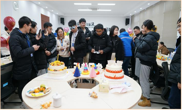在元旦假期前一天,我們迎來了公司2023年度第三場生日會暨入職周年紀念,目之所及是一張張可愛的笑臉以及在人力資源部小伙伴們精心布置琳瑯滿目的生日裝飾和各式各樣的零食水果。